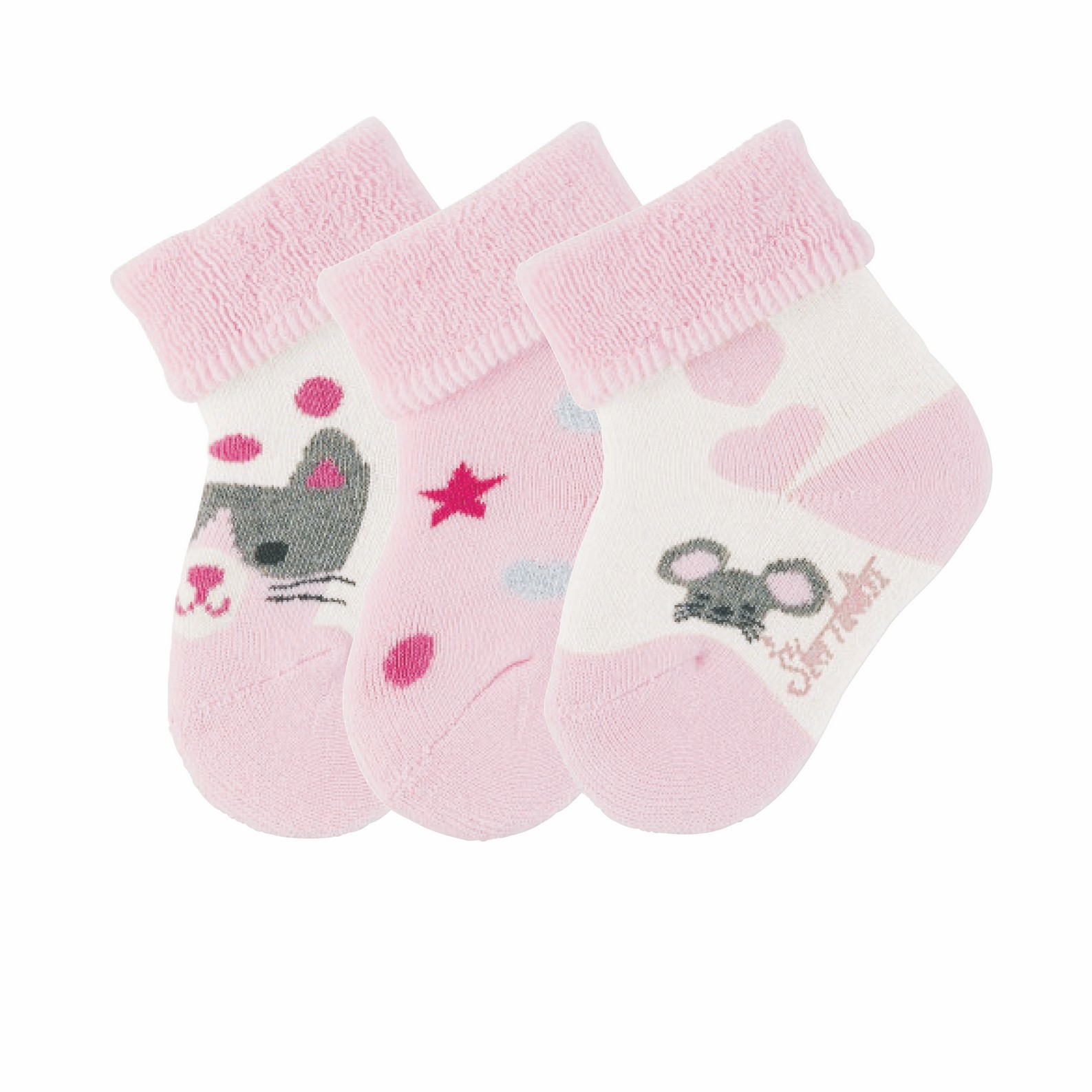 Sterntaler Ponožky kojenecké s manžetkou, froté 3 páry, kočička, myška, hvězdičky, růžové, 8401923