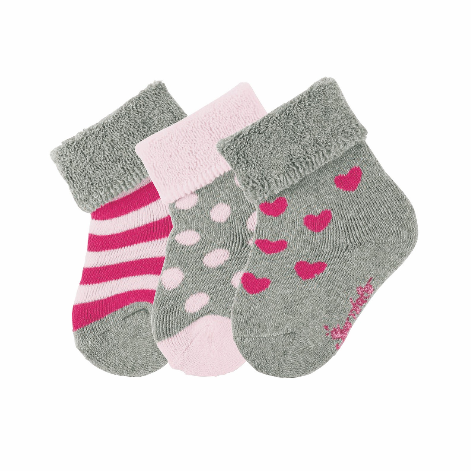 Sterntaler Ponožky novorozenecké 3 páry srdíčka, šedé 8202022