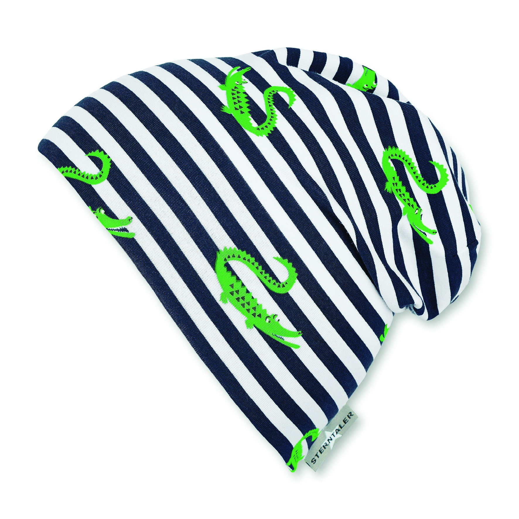 Sterntaler čepice jerzey spadlá šedá chlapecká UV 50+ proužek, krokodýl 1622032