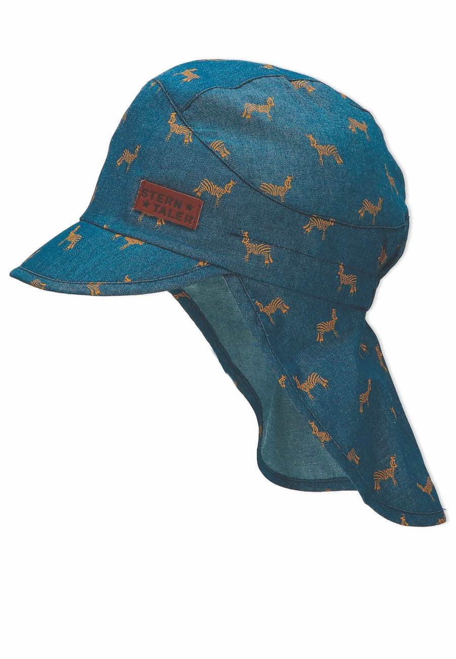 Džínově modrá čepice s plachetkou s motivem zebry. UV 50+