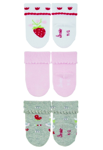 Sterntaler kojenecké ponožky s manžetou dívčí 3 páry jahůdka, motýli bílé 8312253
