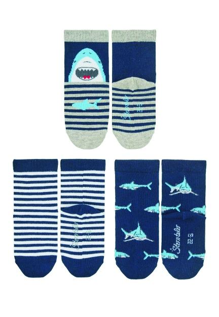Sterntaler ponožky chlapecké 3 páry tmavě modré, žraloci 8322223