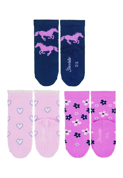 Sterntaler ponožky dívčí 3 páry, modré, koně, srdíčka, kytičky 8322226