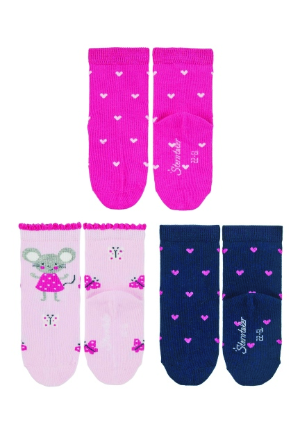 Sterntaler ponožky dívčí 3 páry, růžová, modrá, srdíčka, myška 8322224