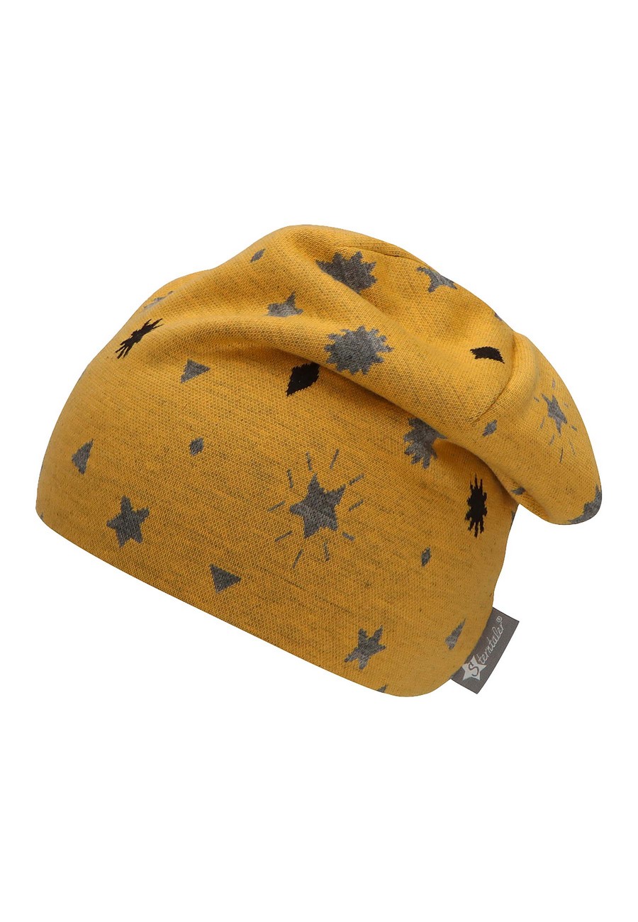 Sterntaler čepice dívčí, spadlá, hořčicová, hvězdičky 4512213