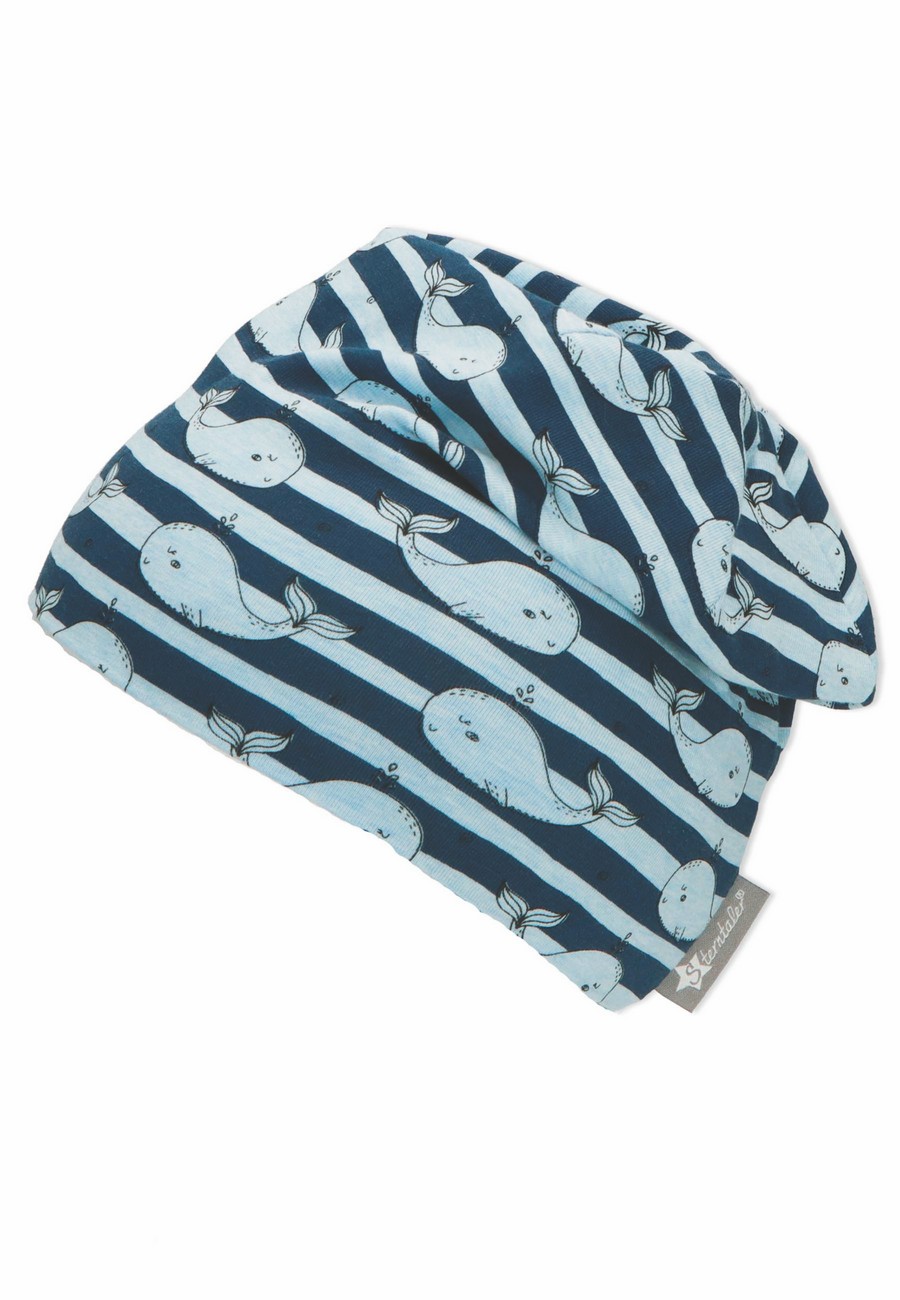 Sterntaler čepice jerzey spadlá modrá chlapecká UV 30+ velryby 1612262