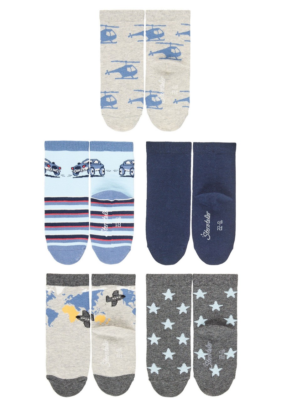 Sterntaler ponožky 5 párů v boxu, chlapecké, modré, šedé, auto, vrtulníky, letadla 8422241