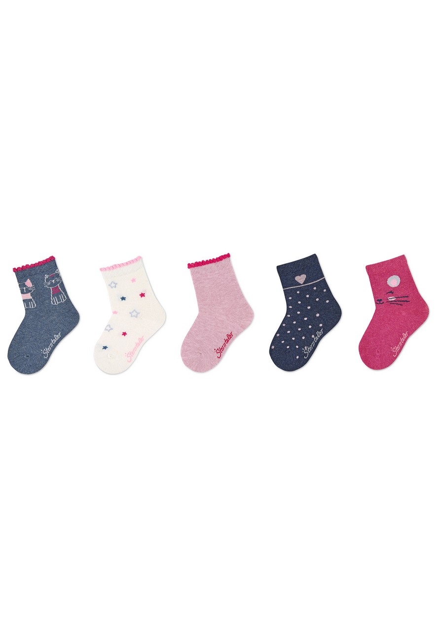 Sterntaler ponožky 5 párů v boxu, dívčí, modré, kočky, myška, srdíčka 8422242 8422242