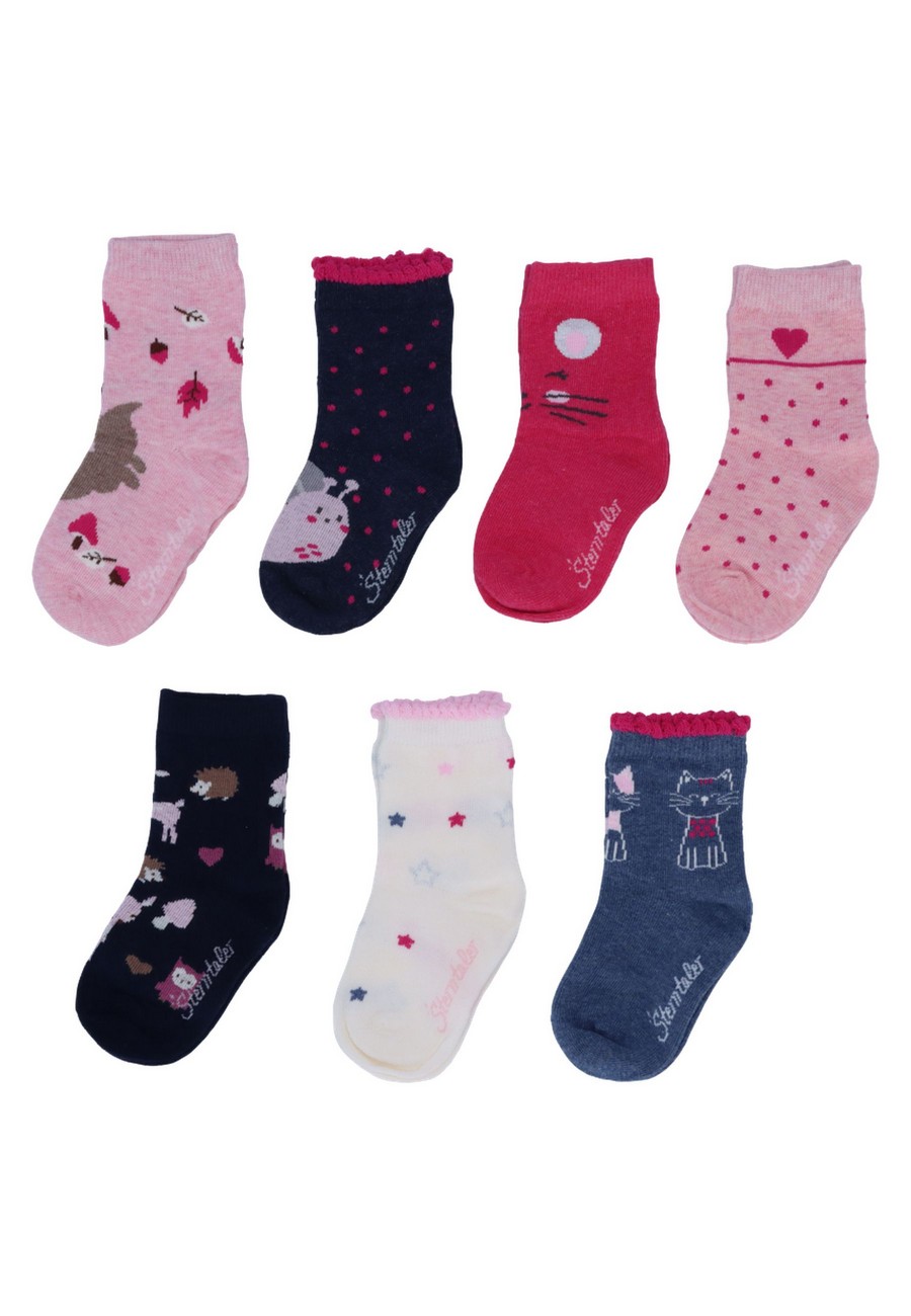 Sterntaler ponožky 7 párů v boxu, dívčí, modré, růžové, kočky, myš, hlemýžď, lesní zvířátka 8422253