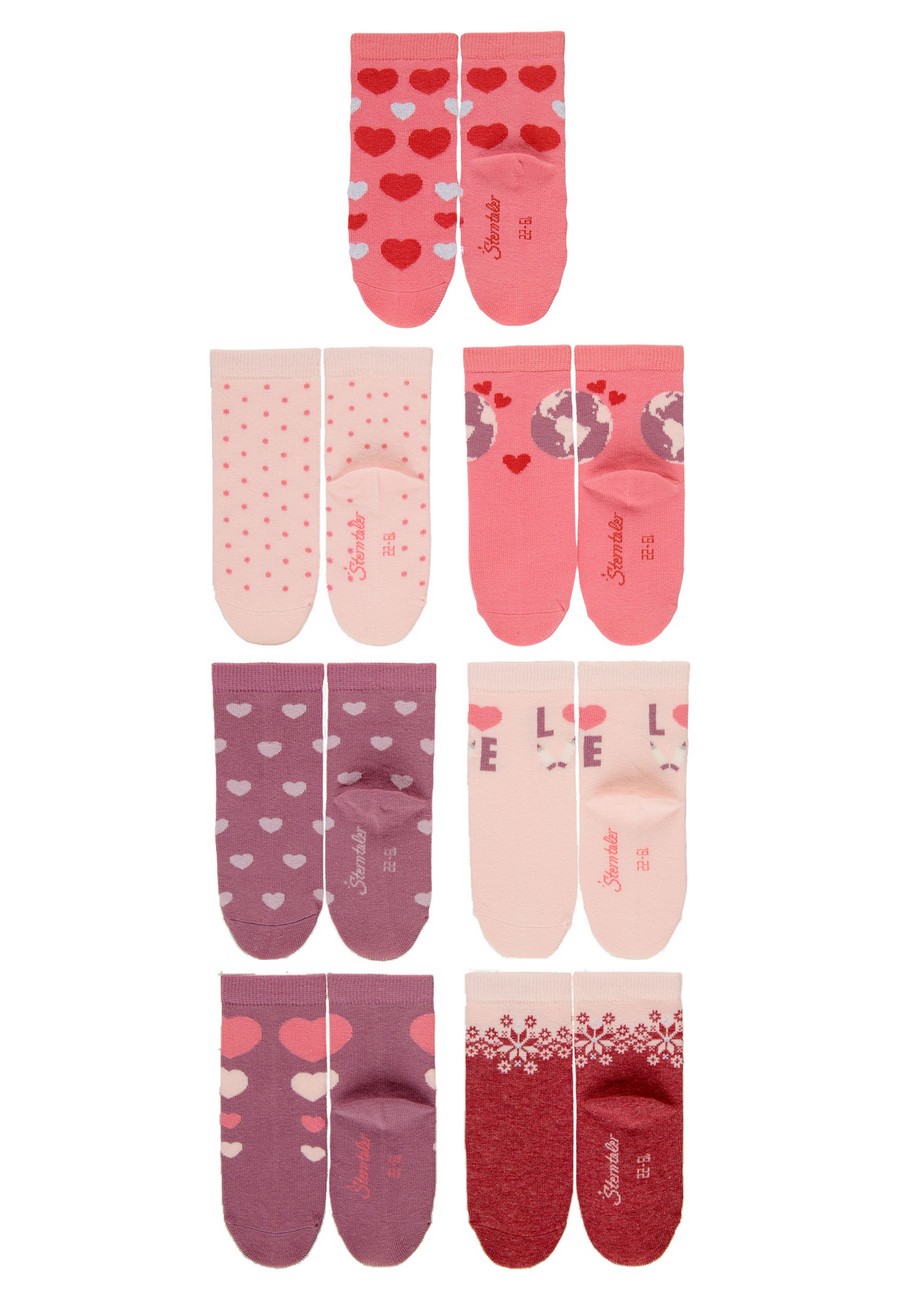 Sterntaler ponožky 7 párů v boxu, dívčí, růžové, fialové, LOVE, srdíčka, puntík, vločky 8422252
