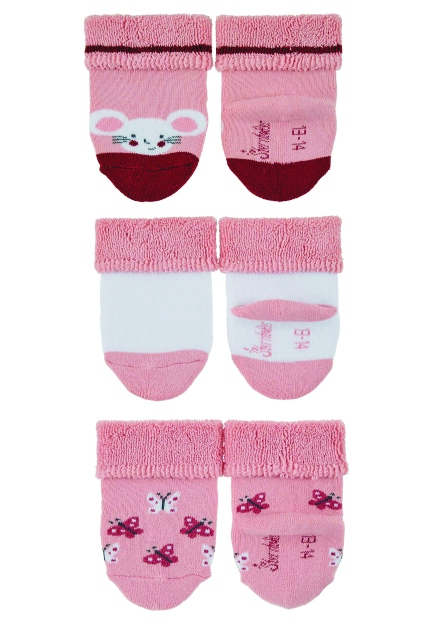Sterntaler Ponožky kojenecké, 3 páry, froté, manžetka, růžové, myška, motýlci 8302223