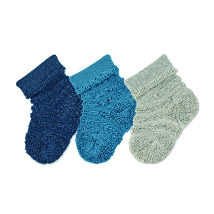 Sterntaler Ponožky kojenecké s manžetkou, 3 páry, jednobarevné, froté proužky, modré 8402120