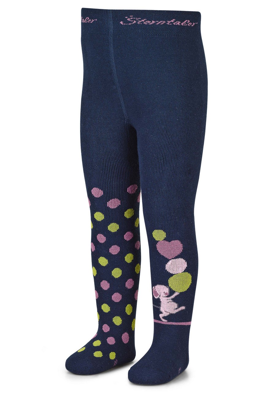 Sterntaler Punčocháče termo froté, zimní, dívčí, tmavě modré s myškou a puntíky 8722207